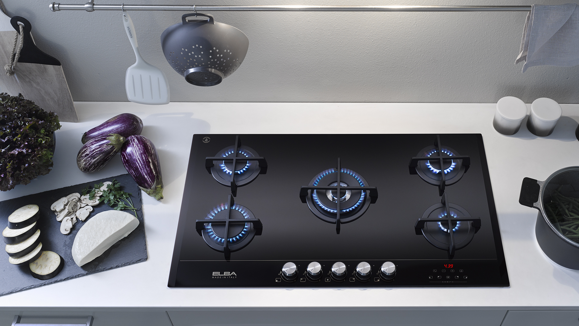 5 gas burners with double ring wok burner